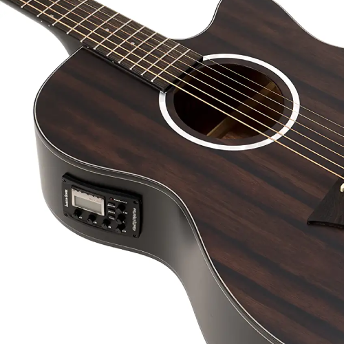 Con un solo rasgueo, escuchará esos graves intensos. La Deep Forest Ebony ACE tiene una calidez que no encontrará en una guitarra típica con tapa de abeto. Al combinar la combinación de maderas de la Ebony ACE con el tamaño, la forma y el refuerzo de este cutaway de auditorio, disfrutará de una mayor articulación y un sonido de guitarra excelente, fácil de lograr, que algunos describen como una compresión natural. Con la electrónica activa Barcus Berry integrada, la Deep Forest Ebony ACE está lista tanto para el escenario como para cualquier oportunidad acústica.